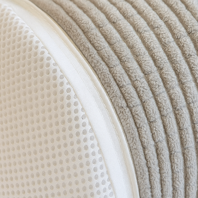 Tillverkad av polyesterbomull och starkt nät på utsidan. Båda materialen är skonsamma men hållbara för långvarig användning.