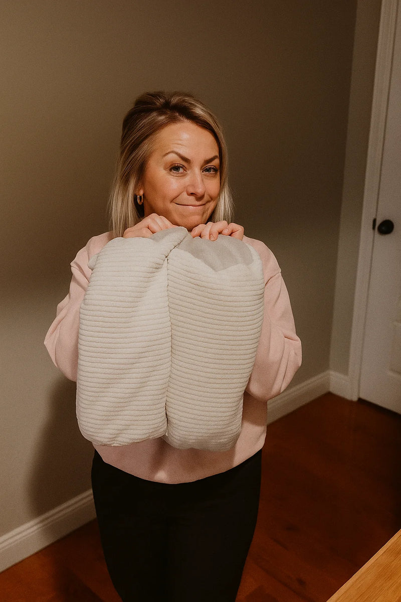 Maskintvättbar. Använd ett skonsamt program och lufttorka för bästa resultat.